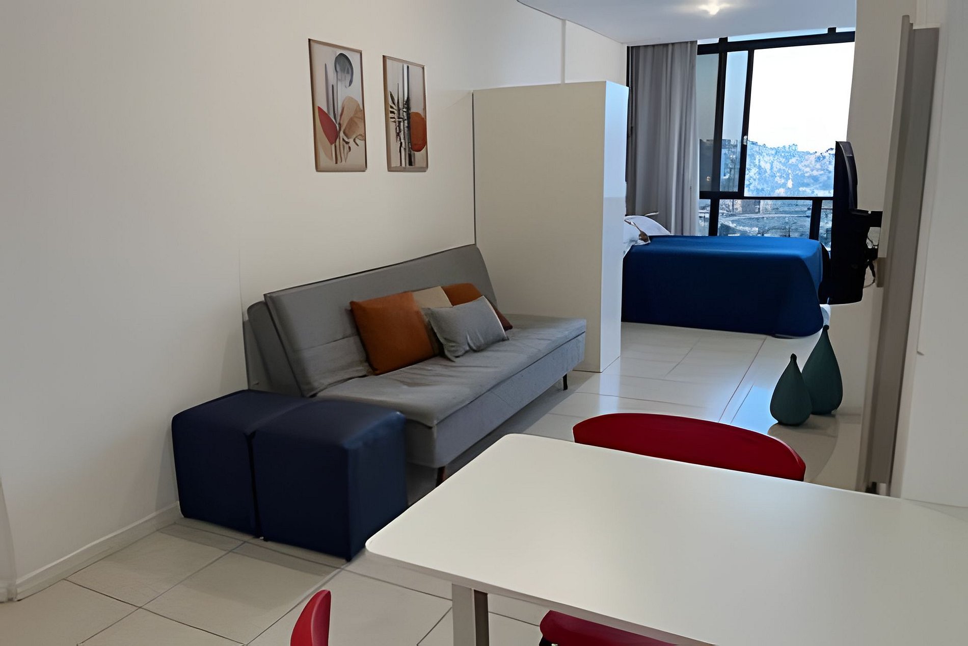Loft amplo com 36m2, claro, arejado, todo montado e decorado. Possui uma cama de casal e um sofá cama de casal. Cozinha toda montada, home office, excelente Wi-Fi, ar-condicionado e uma linda vista da cidade!