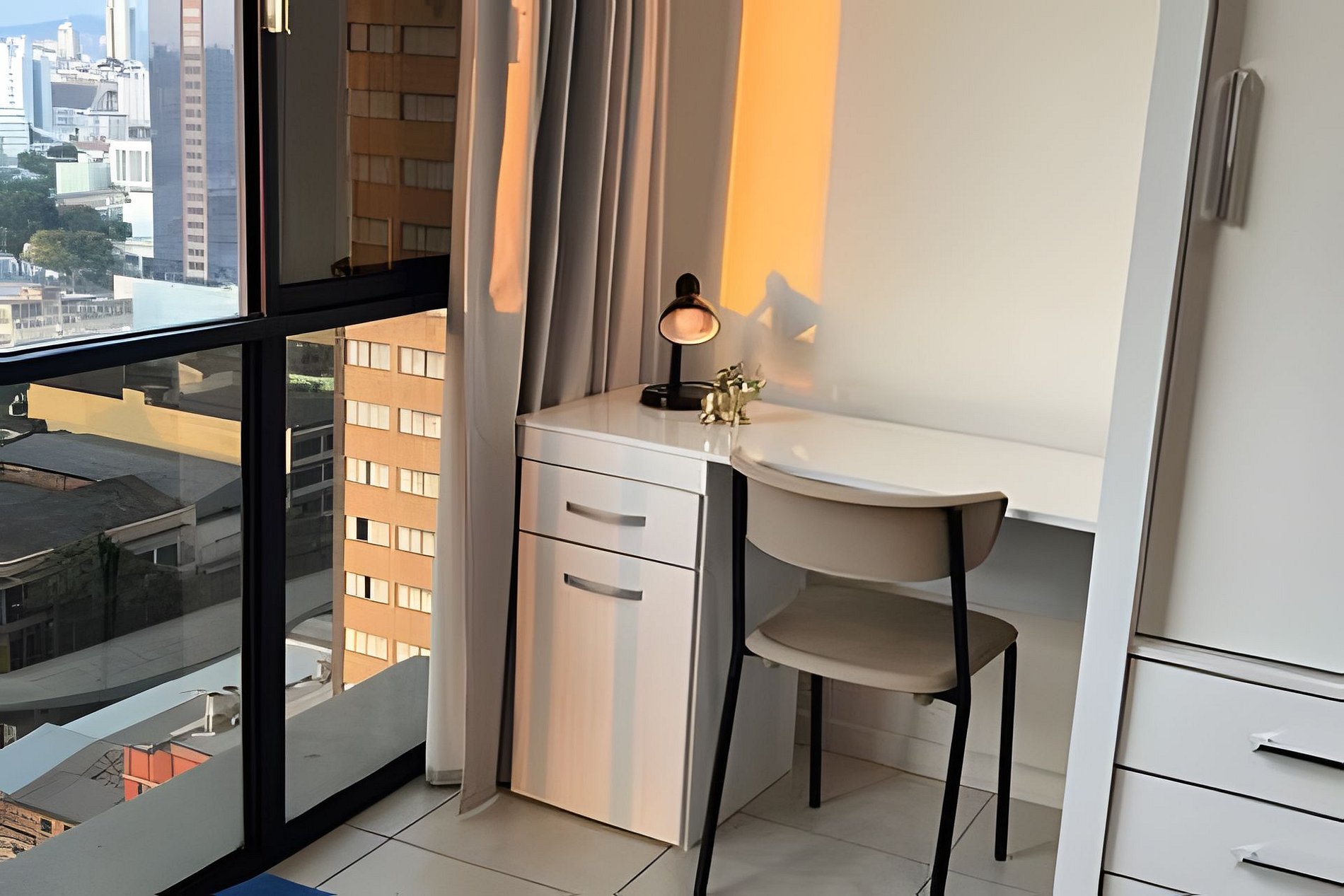 Loft planejado com todo carinho para você curtir Belo Horizonte! Ambiente compacto, planejado, funcional e confortável com linda vista! Estamos no Excelsior Residence, , ambiente totalmente repaginado e traduzido em modernas instalações. Elevadores, portaria 24 horas, um mini-mercado e uma academia toda montada. Curta hospedar-se no Centro de BH! NÃO POSSUI ESTACIONAMENTO, mas há terceirizados nas proximidades. O ACESSO AO APTO É RESTRITO AOS HÓSPEDES. NÃO SÃO PERMTIDAS VISITAS.