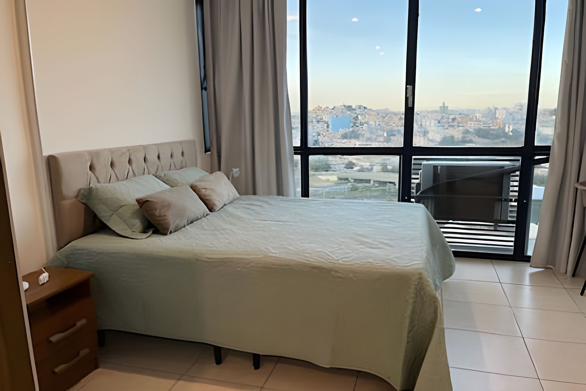 Loft amplo com 40m2, claro, arejado, todo montado e decorado. Possui uma cama de casal tamanho Queen e um sofá cama. Marcenaria planejada, home office, ar-condicionado split, cozinha toda montada, excelente Wi-Fi e uma linda vista da cidade!